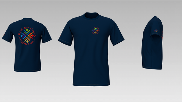 T-shirt (Heren) met borst logo (max afmeting 15cm),rug logo (max afmeting 30cm) en arm logo 2 zijde (max afmeting 5cm)