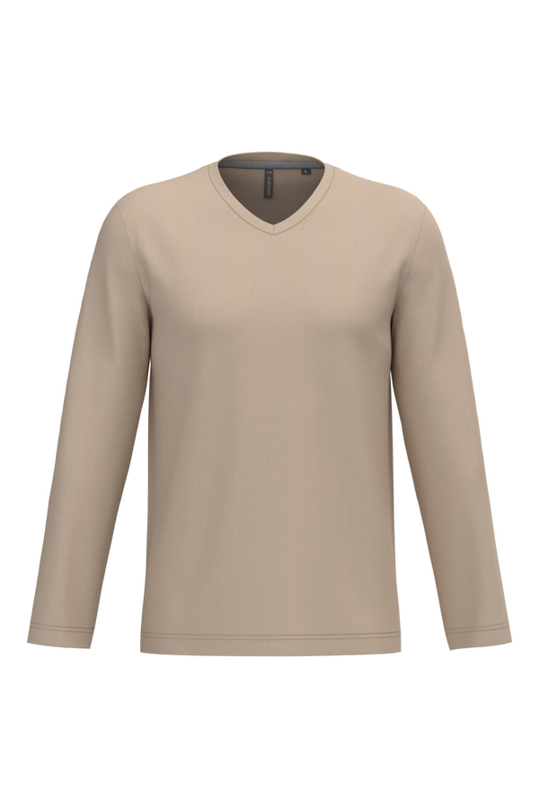 T-shirt (Heren) Lange mouwen / V-Hals met eigen afbeelding (max afmeting 30x30cm)